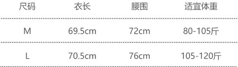 Size(cm)               Length                   Waist                Ref. Weight(2KG)
