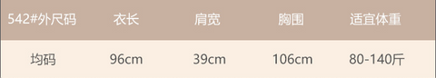 Size (cm-542 Robe) Length        Shoulder          Bust            Ref. Weight(2kg)