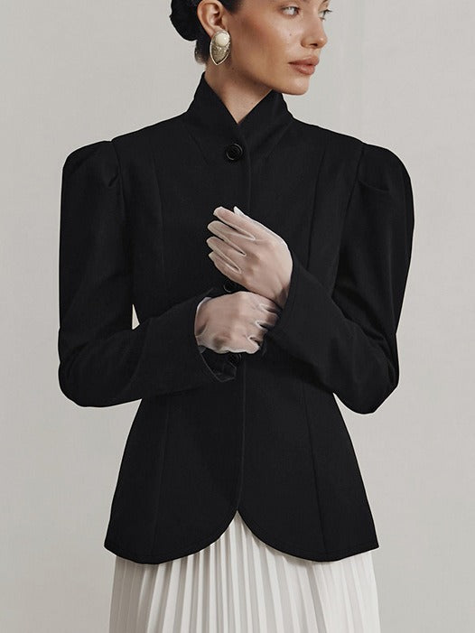 Vintage Stand Collar Puff Sleeve Blazer