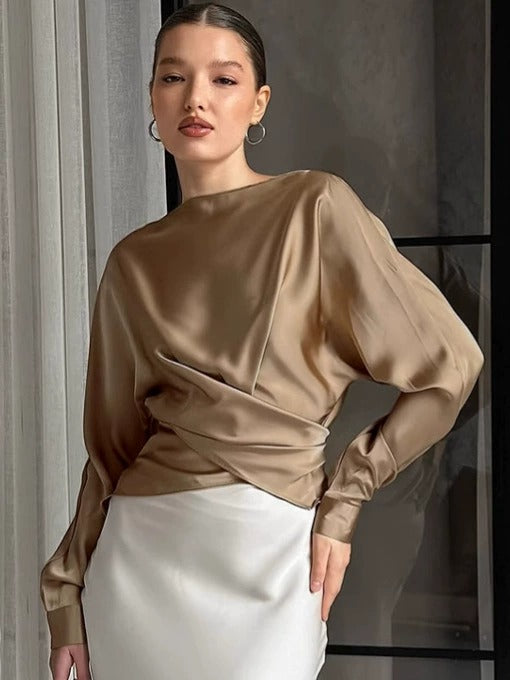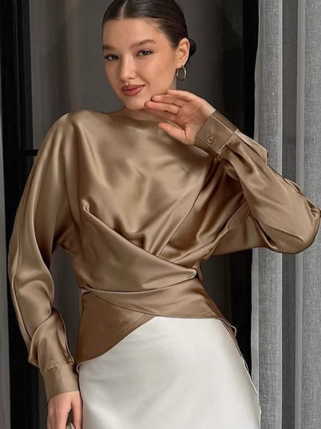 • Load image into Gallery viewer, Satin Silky Irregular Ruched Blouse