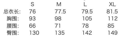 Size: S,M,L,XL ( From top to bottom: Length, bust, waist, hip )