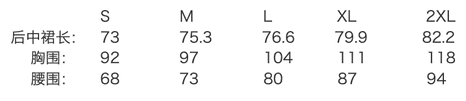 Taglia: S-XXL (dall'alto verso il basso: lunghezza CB, busto, vita)
