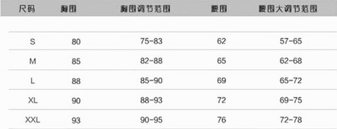 Dimensioni (cm) Busto Gamma di busto regolabile Vita Gamma di vita regolabile