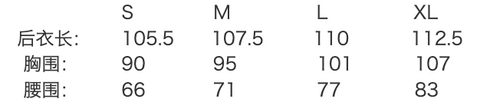 Taglia: S, M, L, XL (dall'alto verso il basso: lunghezza posteriore, busto, vita)