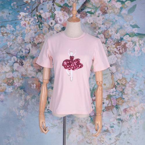 レディース 伸縮性コットン モダール グラフィックプリント Tシャツ