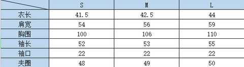 Size: S,M,L (from top to bottom: length, shoulder, bust, sleeve length, sleeve opening, armhole)